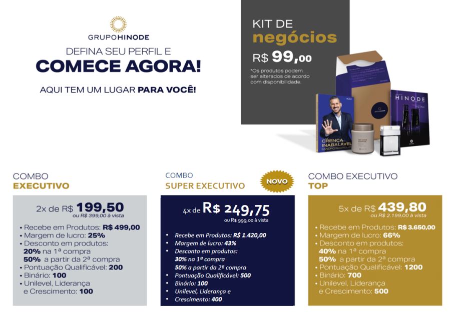 Se você já adquiriu seu Kit de Negócio, para garantir sua ativação no Plano de Marketing da Hinode você deverá realizar seu primeiro Pedido de comobo na Hinode, através da aquisição de um dos Combos: Executivo, Executivo Plus ou Executivo Top.